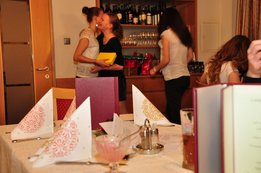 Das Knurren so mancher hungriger Bäuche konnte man nicht mehr überhören, daher ging es zum gemütlicheren Teil unserer Weihnachtsfeier über. Bei drei verschiedenen Menüs war für jeden das Richtige dabei und so wurde natürlich jedes unserer Mitglieder satt :-) Und damit keiner mit leeren Händen nachhause geht, ging es gleich zum nächsten Teil über, dem Wichteln. Bei den Geschenken ließ sich heuer wirklich jeder etwas einfallen und jeder wartete gespannt darauf, was sich hinter seiner gezogenen Glücksnummer wohl befinden wird!