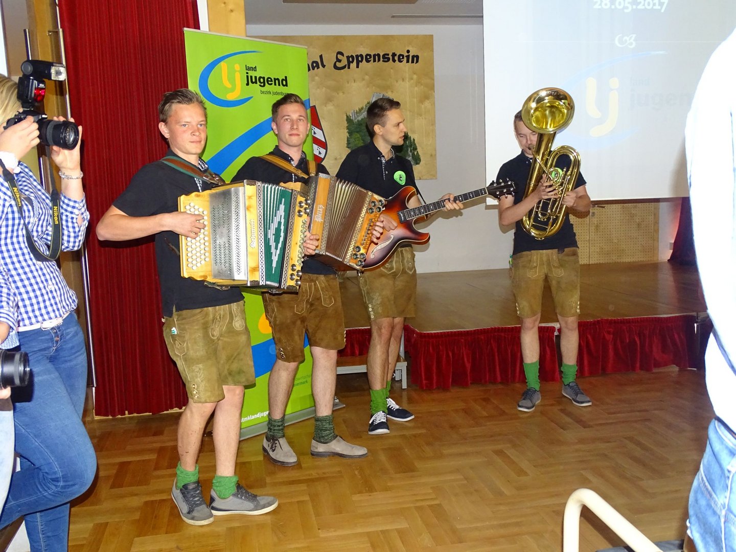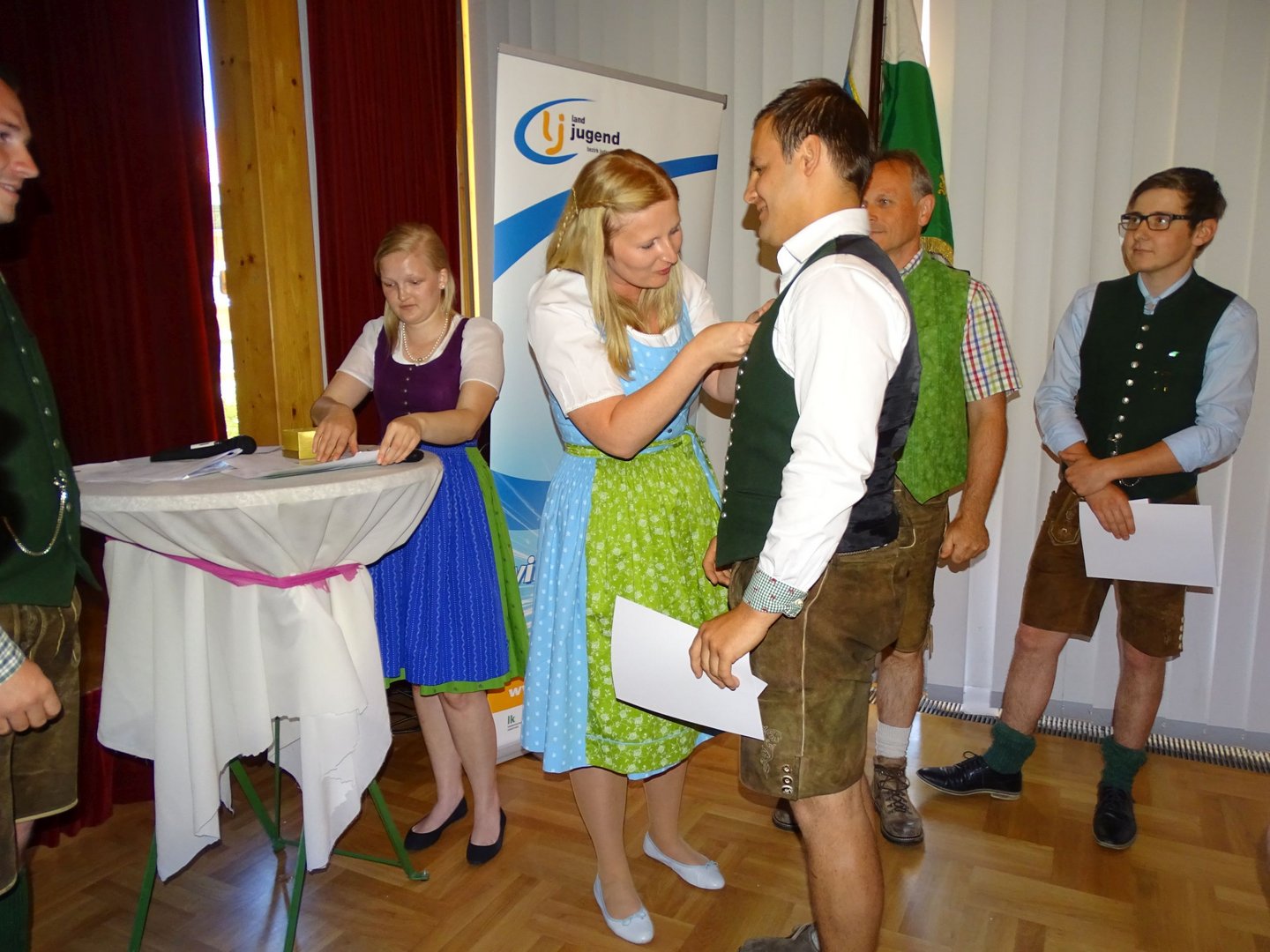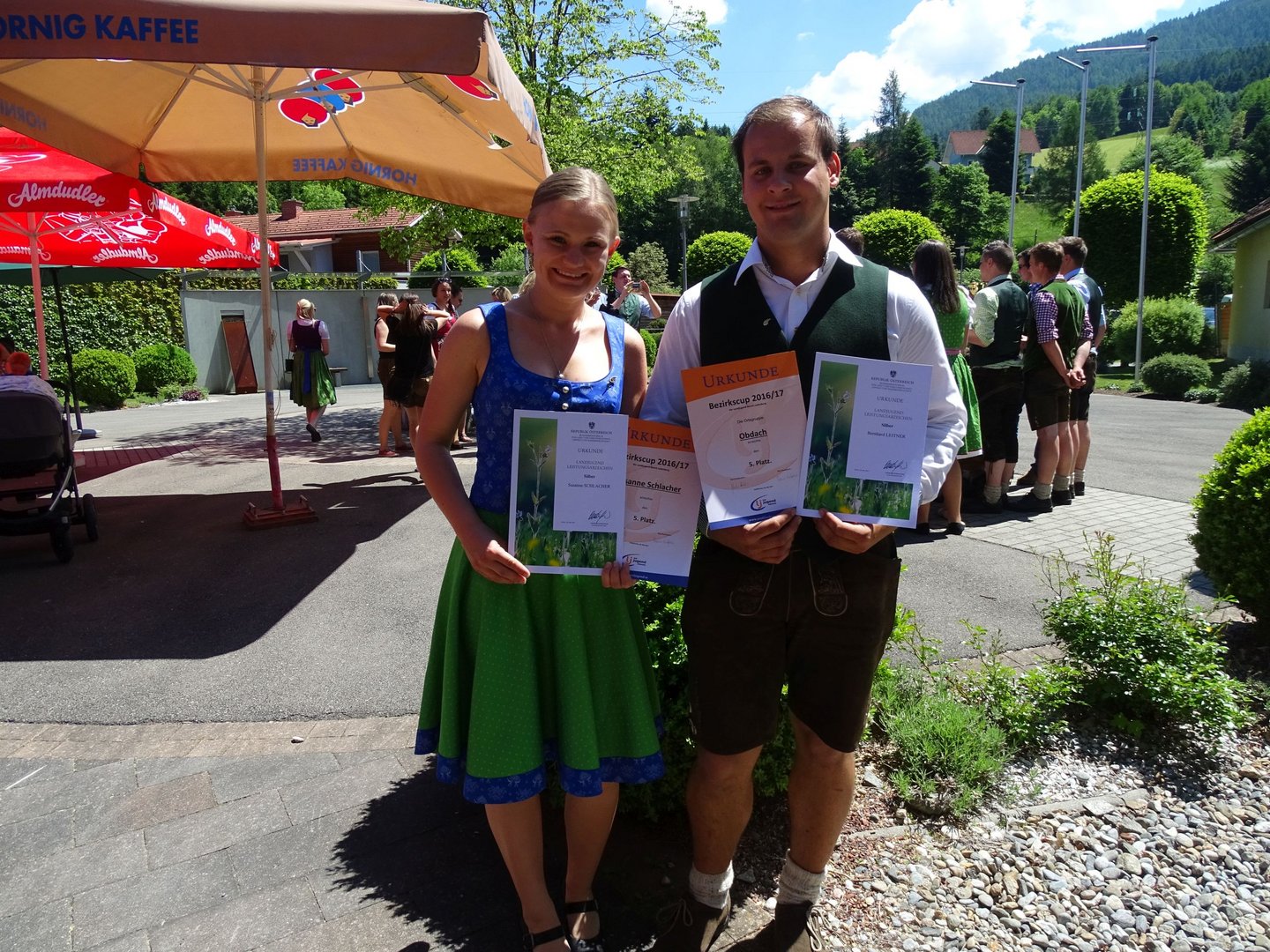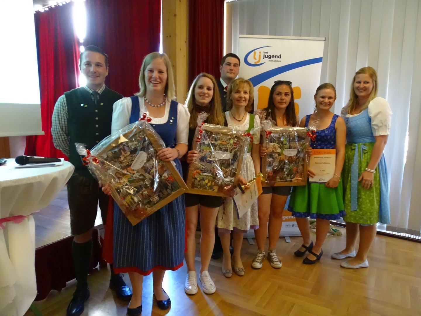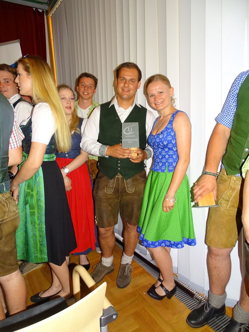 Am Vormittag ging es schon los und wir fuhren zum alljährlichen Bezirkstreffen, dass heuer in Weißkirchen stattfand. Um 9 Uhr trafen wir uns nämlich schon am Busbahnhof und machten uns auf den Weg, um den Gottesdienst in der Pfarrkirche Weißkirchen zu besuchen. Diese wurde von einer Teilbesetzung von "Styria 3" musikalisch umrahmt. Anschließend fand im Dorfsaal in Eppenstein der Festakt statt. Bei der Verleihung der silbernen Abzeichen konnte man erkennen, dass unsere Landjugend in guten und vor allem fleißigen Händen ist. Obmann Bernhard Leitner und Leiterin Susanne Schlacher durften sich darüber freuen. Doch das war noch nicht genug. In der Einzelwertung Bezirks-Cup Mädels holte sich ebenfalls Susanne Schlacher den 5. Platz und auch in der Ortsgruppenwertung durften wir uns über den überraschenden 5. Platz freuen. Den 1. Platz holte sich heuer die Landjugend Unzmarkt. Wir gratulieren!