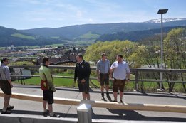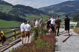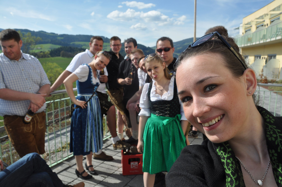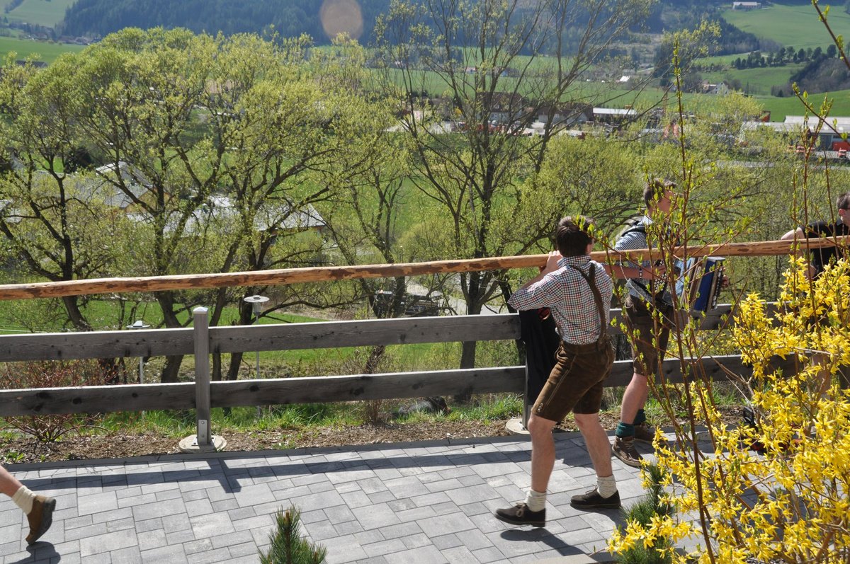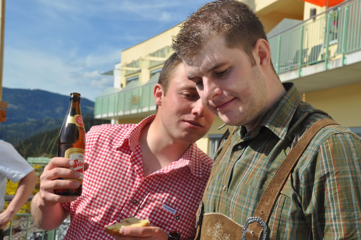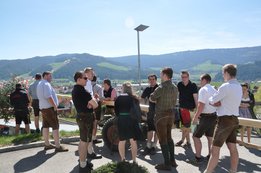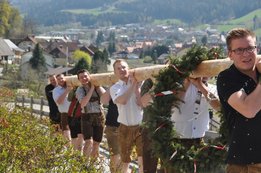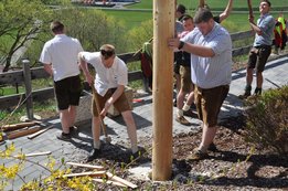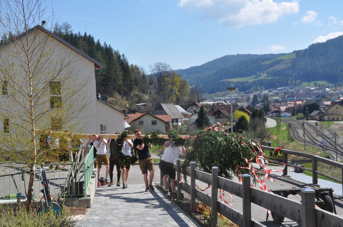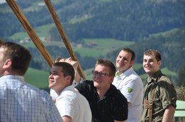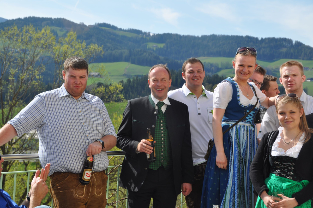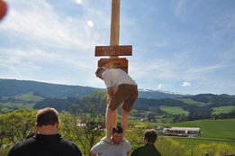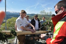 Nachdem die Jungs gemeinsam mit dem Baum heil um 14.00 Uhr in der Seniorenresidenz eintrafen, nahmen wir noch den allerletzten Feinschliff vor. Nun waren starke Hände gefragt, 12 Burschen stellten den Maibaum tadellos auf und wurden dabei von den drei Mädels angefeuert. Später begrüßte unser Obmann Michael Leitner die Heimbewohner und Leiterin Angelika Richter trug ein kurzes Maibaumgedicht vor. Auch unseren Bürgermeister Peter Bacher durften wir willkommen heißen. Umrahmt von den Klängen der Harmonika, genossen wir noch den wunderschönen, sonnendurchfluteten Nachmittag in lustiger Gesellschaft. Auch eine leckere Jause wurde uns zur Stärkung serviert, die hatten wir uns richtig verdient! :-) Nach diesem Tag freuen wir uns alle schon wieder, den Baum in die Quere zu bringen. Den im Sommer heißt es dann wieder: „BAUM FÄLLT!“ :-) by Susi Schlacher :-)