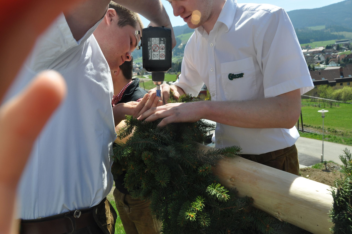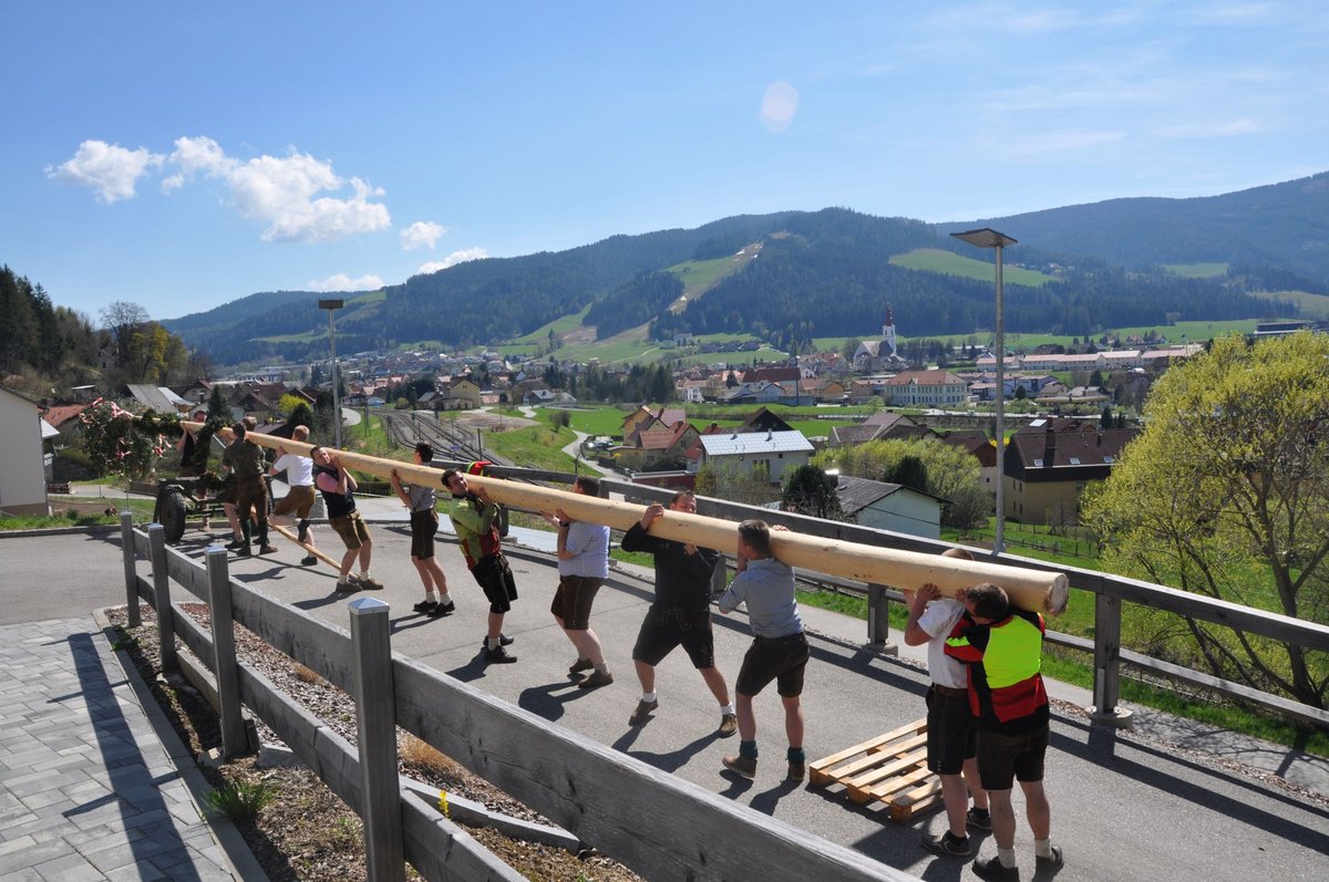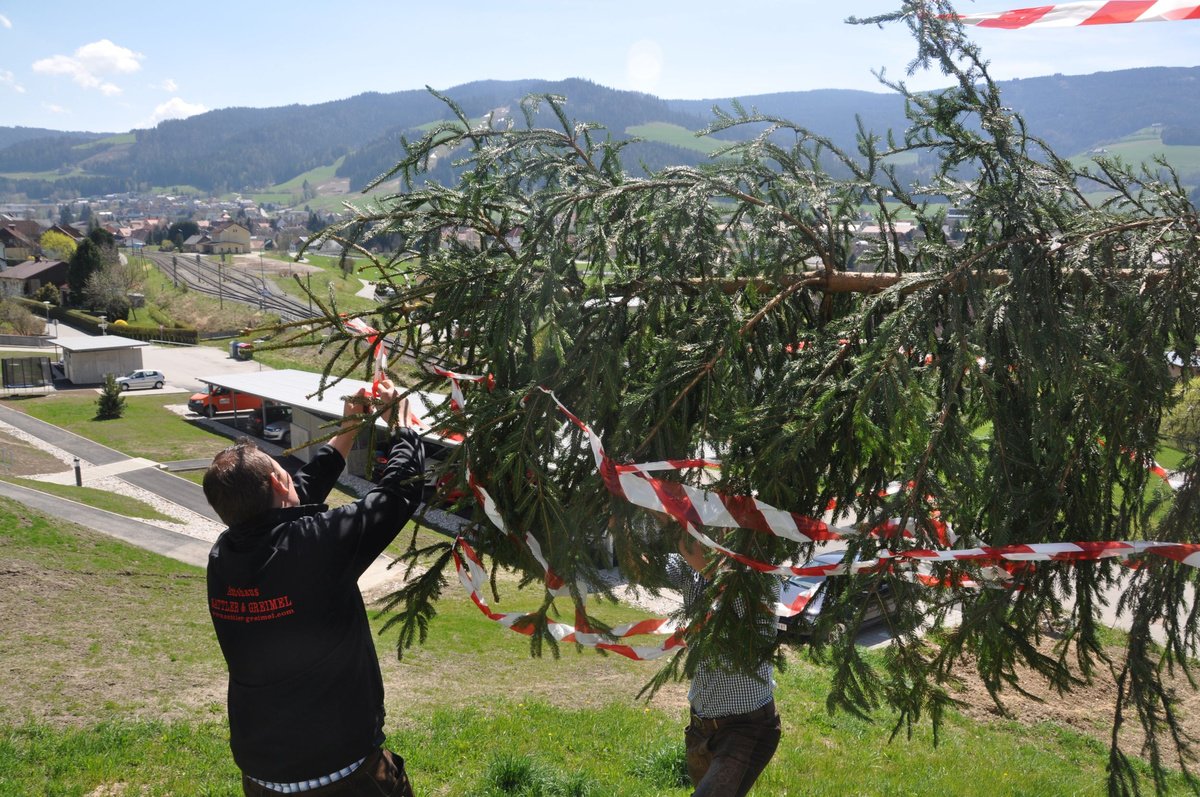 Schon in den frühen Morgenstunden hieß es für die Burschen der Landjugend Obdach „Tagwache“. Denn wenn man einen Baum aufstellen möchte, muss man natürlich zuerst einen umschneiden. Gesagt getan und so konnten unsere fleißigen Mädels den Kranz und die Girlande für den Baum binden. Heuer wurde der Maibaum von Familie Rieser vlg. Rieger spendiert, wofür wir uns noch einmal herzlich bedanken möchten. :-)