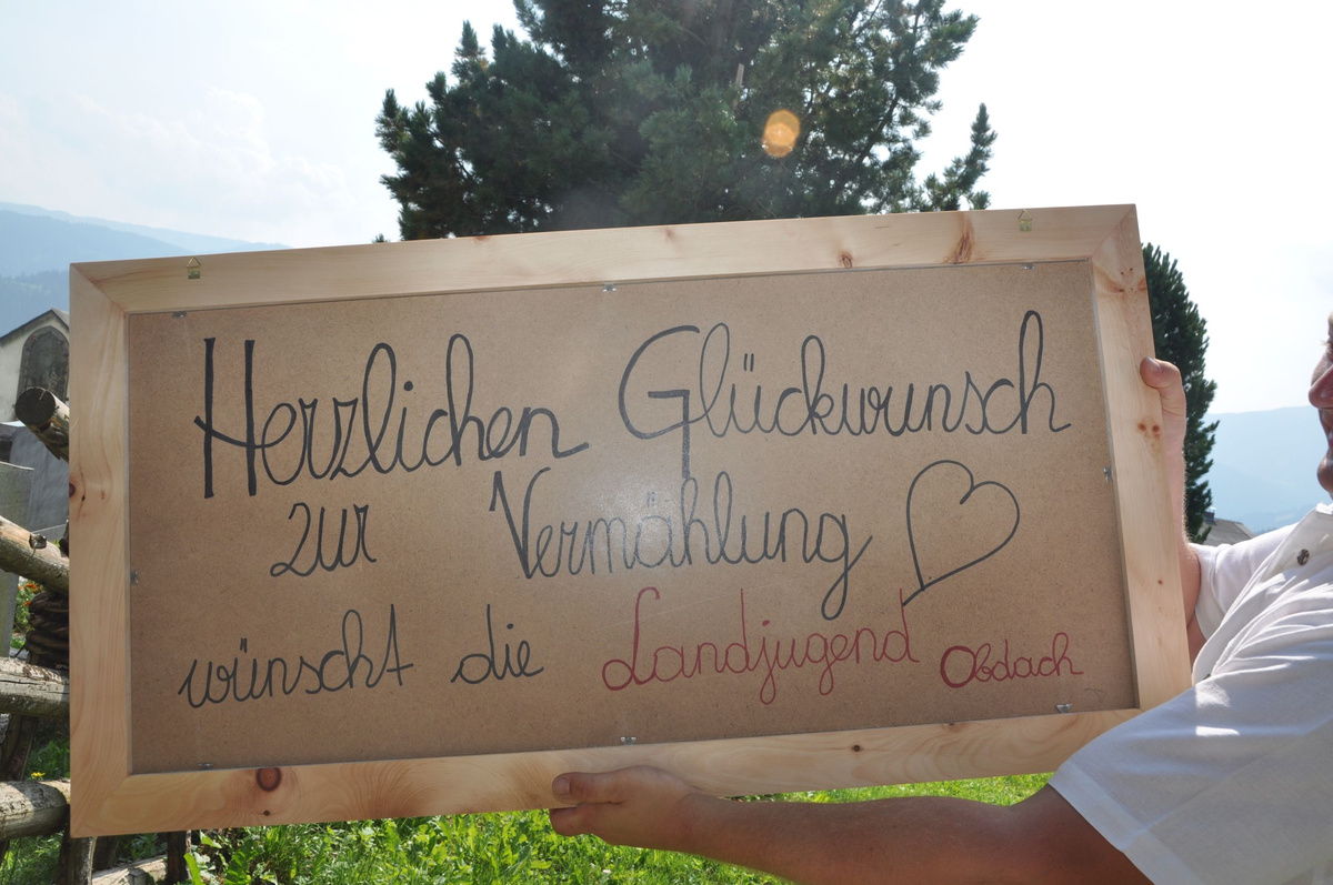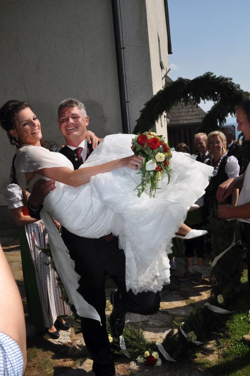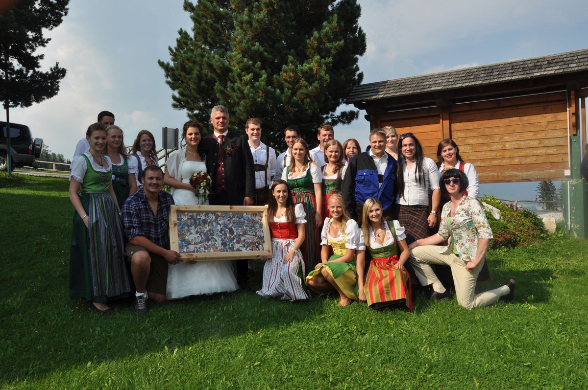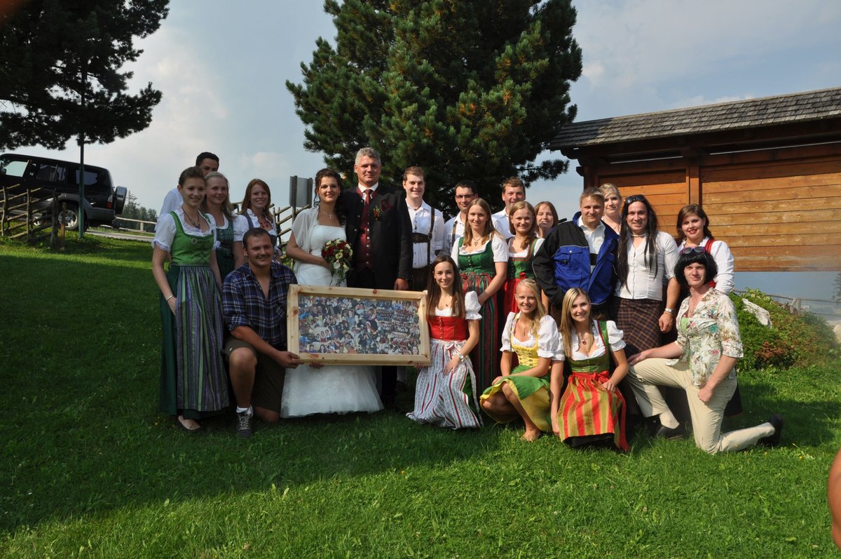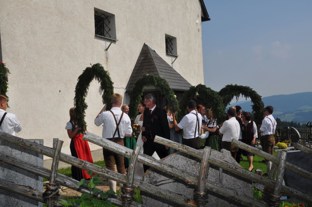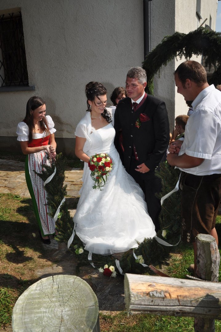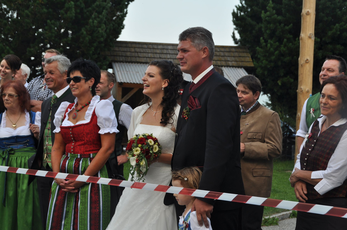 Sandra und Ernst sind zwei langjährige und tatkräftige Mitglieder unserer Landjugend. Beim Polonaise tanzen und auch bei den letzten Schiausflügen waren sie immer live dabei. Auch heute noch können wir immer auf unseren Ernsti zählen wenn es ums Müll entsorgen beim Bauernball geht! Daher haben wir uns dazu entschlossen die beiden an ihrem großen Tag vor der Kirche mit selbst gebundenen Bögen zu überraschen. Die Freude des Brautpaares war durchaus zu sehen. Mit so vielen Leuten hatten sie anscheinend nicht gerechnet. Auch die danach von uns inszenierte Maut war eine große Überraschung und rief so manche Erinnerungen an die Vergangenheit hervor. Am Abend durften wir mit den beiden bis spät in die Nacht beim Grillitsch feiern. Wir wünschen dem frisch vermählten Brautpaar alles erdenklich gute, viel Glück und Gesundheit.