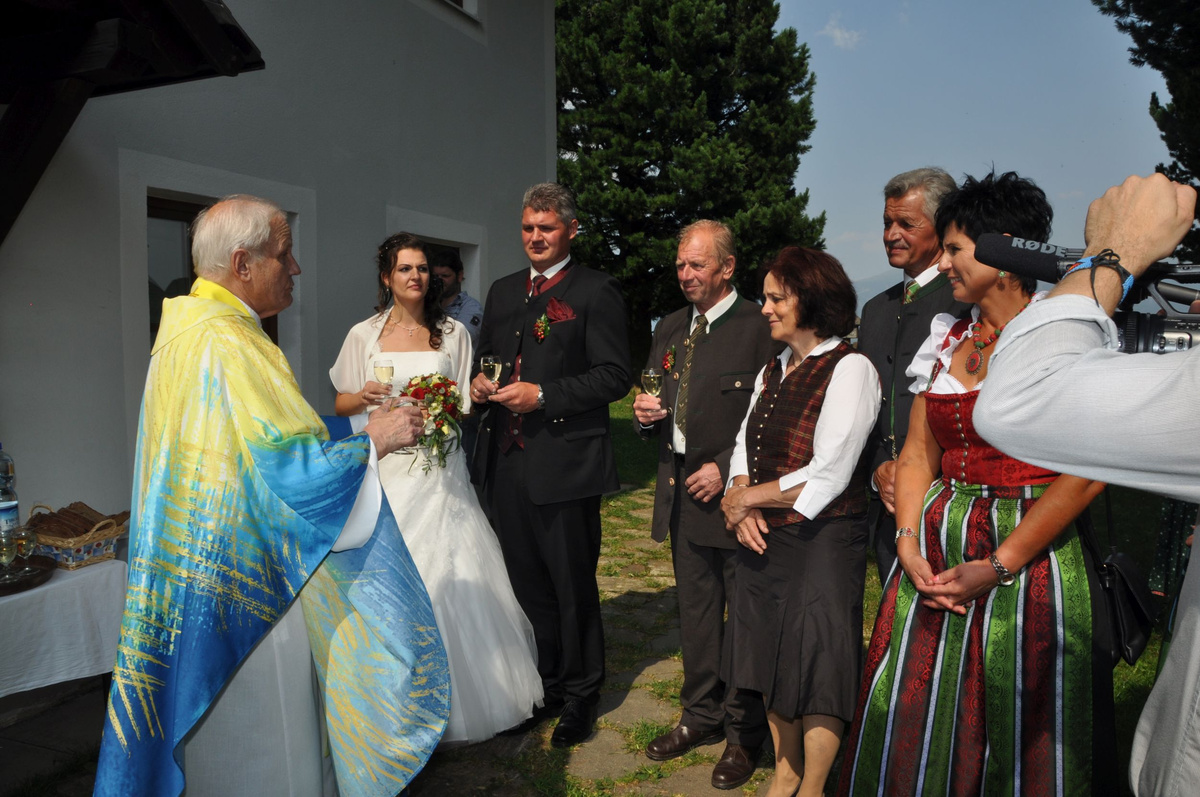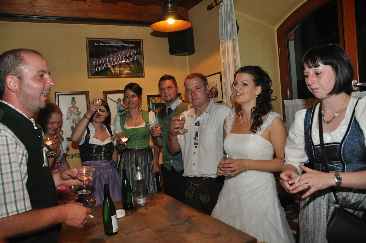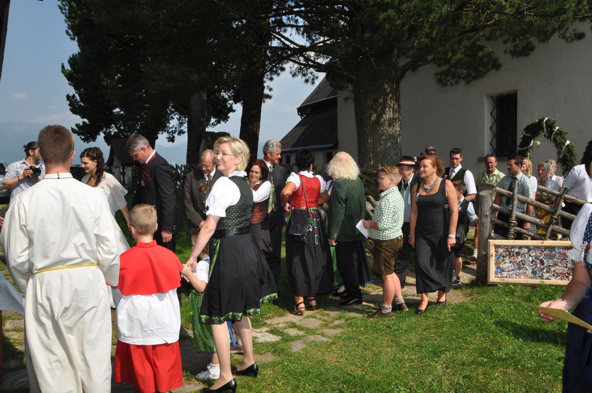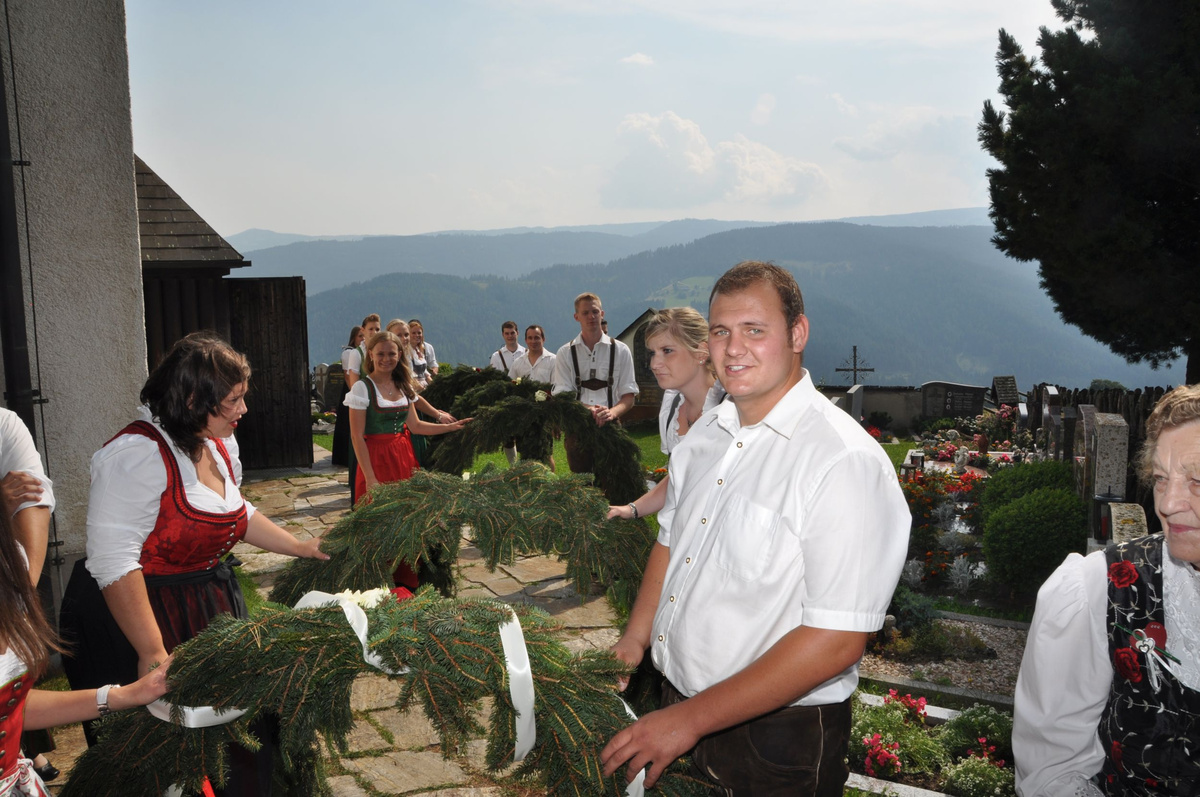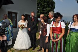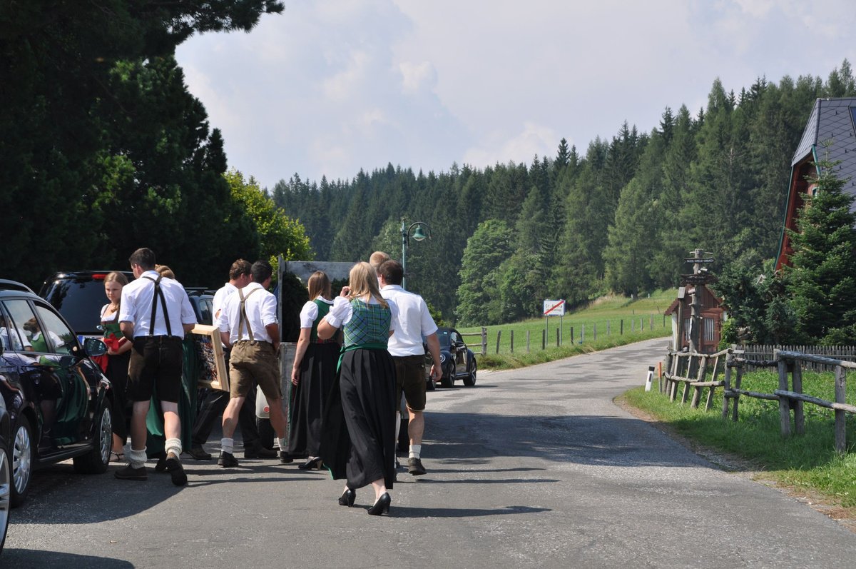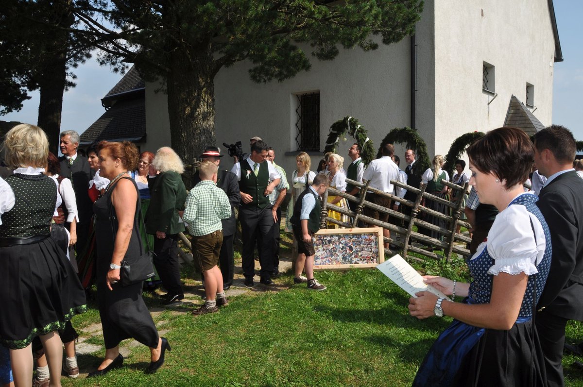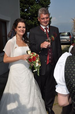 Sandra und Ernst sind zwei langjährige und tatkräftige Mitglieder unserer Landjugend. Beim Polonaise tanzen und auch bei den letzten Schiausflügen waren sie immer live dabei. Auch heute noch können wir immer auf unseren Ernsti zählen wenn es ums Müll entsorgen beim Bauernball geht! Daher haben wir uns dazu entschlossen die beiden an ihrem großen Tag vor der Kirche mit selbst gebundenen Bögen zu überraschen. Die Freude des Brautpaares war durchaus zu sehen. Mit so vielen Leuten hatten sie anscheinend nicht gerechnet. Auch die danach von uns inszenierte Maut war eine große Überraschung und rief so manche Erinnerungen an die Vergangenheit hervor. Am Abend durften wir mit den beiden bis spät in die Nacht beim Grillitsch feiern. Wir wünschen dem frisch vermählten Brautpaar alles erdenklich gute, viel Glück und Gesundheit.