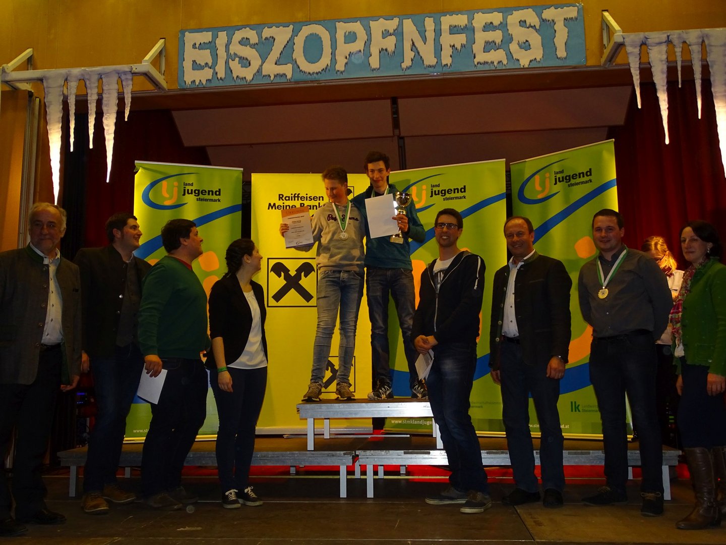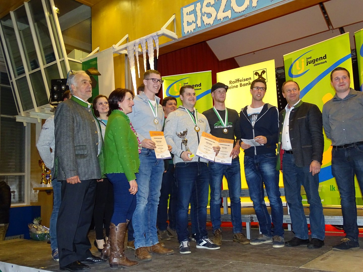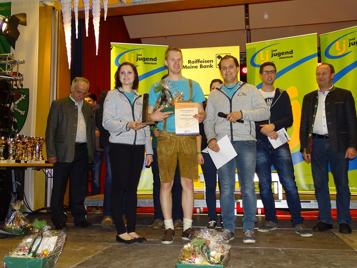 Über 250 TeilnehmerInnen aus der ganzen Steiermark kamen am 24. Februar 2018 zu den Landeswinterspielen nach Obdach – also ein sogenanntes „Heimspiel“ für uns. In 9 Disziplinen und 22 Medaillenentscheidungen wurde um die Landessiege gekämpft. Und wir zeigten natürlich wieder, was wir drauf haben. Ergebnisse Rodeln: Unglaublich, aber wahr: Uns - der Ortsgruppe Obdach - gelang es tatsächlich beim Rodeln 8 der möglichen 18 Medaillen und davon 4 von 6 möglichen in Gold zu holen. Bei den Sportrodlern Mädchen teilten sich die Obdacher das komplette Stockerl. Auf den 1. Platz fuhr sich Elena Maurer, Platz 2 erreichte Susanne Schlacher und über den 3. Platz durfte sich Martina Schlacher freuen. Bei den Sportrodlern Burschen holte Ulfried Götschl die Goldmedaille nach Hause. Auch bei den Schneckenrodlern Burschen konnten wir 2 Medaillen nach Hause holen. Andreas Schlacher freute sich über die goldene und Markus Kreuzer über die silberne. Beim Sportrodeln Doppelsitzer schafften es Ulfried Götschl und Elena Maurer wie im letzten Jahr Gold zu holen. Beim Schneckenrodeln Doppelsitzer freuten sich Markus Kreuzer und Susanne Schlacher über die Bronzene, Andreas Schlacher und Martina Schlacher konnten sich auf den 4. Platz fahren. Ergebnisse Schifahren: In der Kategorie Schi Alpin Mädchen I freute sich Lena Schmedler über den 2. Platz. Johanna Fessl erreichte Platz 6. In der Kategorie Schi Alpin Burschen I fuhr sich Florian Fessl auf Platz 5. Bei Schi Alpin Burschen II erreichte Bernhard Rieser Platz 8. Beim Alpin Parallelbewerb Mädchen schaffte es Lena Schmedler bis ins Viertelfinale. Und als ob die großartigen Leistungen noch nicht genug wären, durfte sich der Landjugend Bezirk Judenburg auch noch über den 1. Platz in der Bezirkswertung freuen. Mit 644 Punkten gewann der Bezirk Judenburg mit 3 Punkten Vorsprung die Bezirkswertung vor dem Vorjahressieger Voitsberg. Eiszopfnfest Am Abend fand die Siegerehrung und anschließend das Eiszopfnfest im VAZ Obdach statt, wo die zahlreichen Siege noch ordentlich gefeiert wurden. Im Saal sorgten die jungen Südsteirer für fantastische Stimmung, in der Disco legte Sound Society auf. Im Großen und Ganzen bleibt nur zu sagen, die Winterspiele sowie auch das Eiszopfnfest waren ein voller Erfolg!