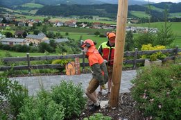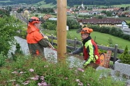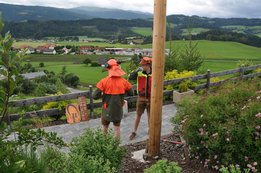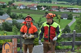 Die Wetterverhältnisse waren nicht die einfachsten. Starker Wind erschwerte unseren Holzknechten Berni und Baumi das Umschneiden ersichtlich.