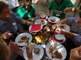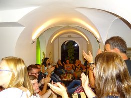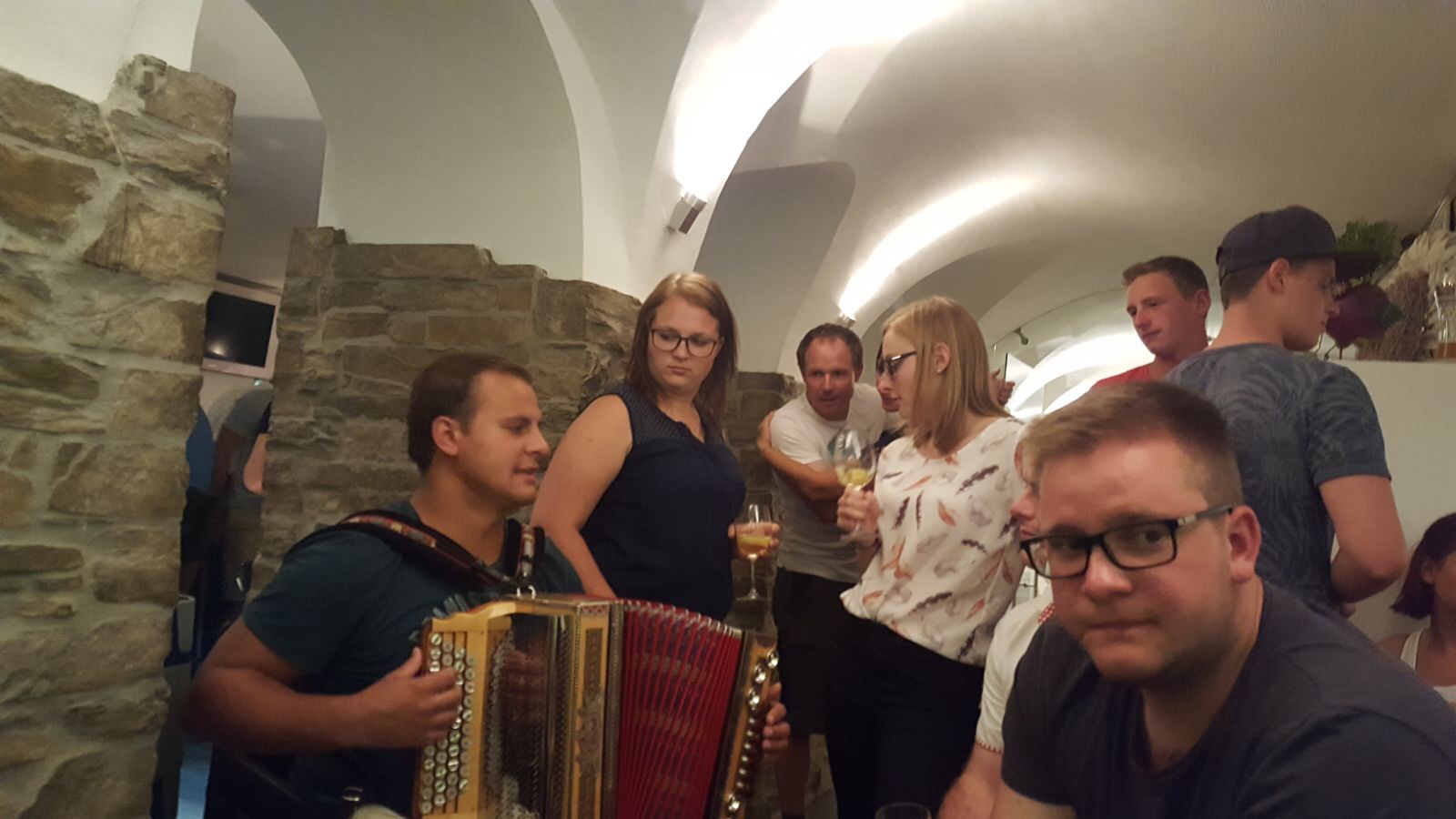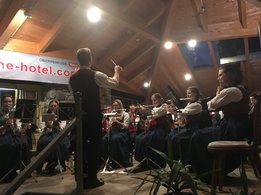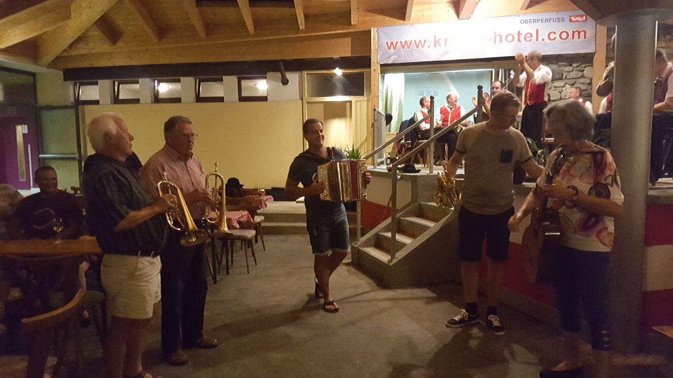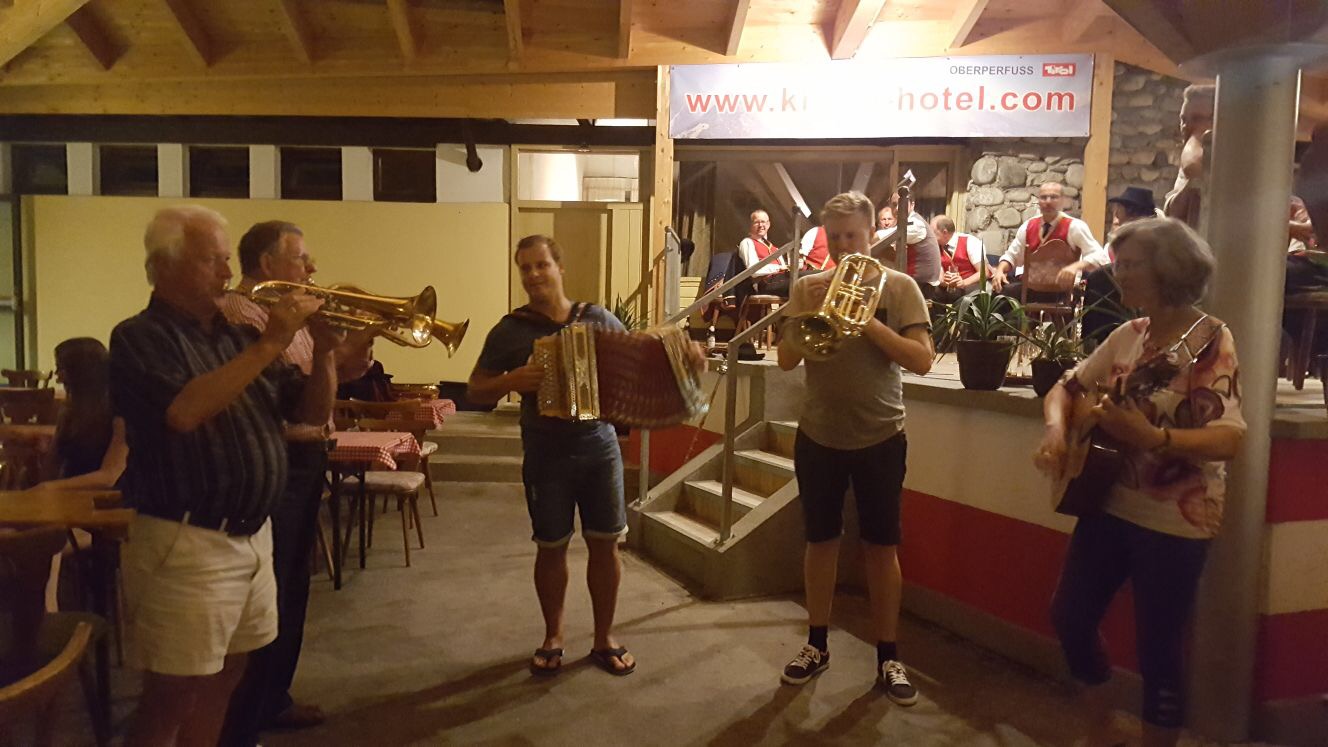 Zurück aus der Höhle der Kristalle machten wir uns auf den Weg nach Oberperfuss, um dort unser Quartier zu beziehen. Im „Hotel Krone“ ließen wir es uns bei einem wunderbaren Abendessen gut gehen. Um kurz vor neun gab es dann im Hotelgarten ein Blaskonzert von der Blaskapelle Oberperfuss, mit welcher wir den Abend bis in die frühen Morgenstunden ausklingen ließen.