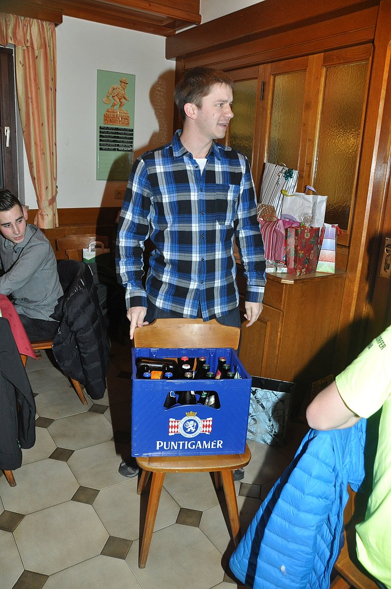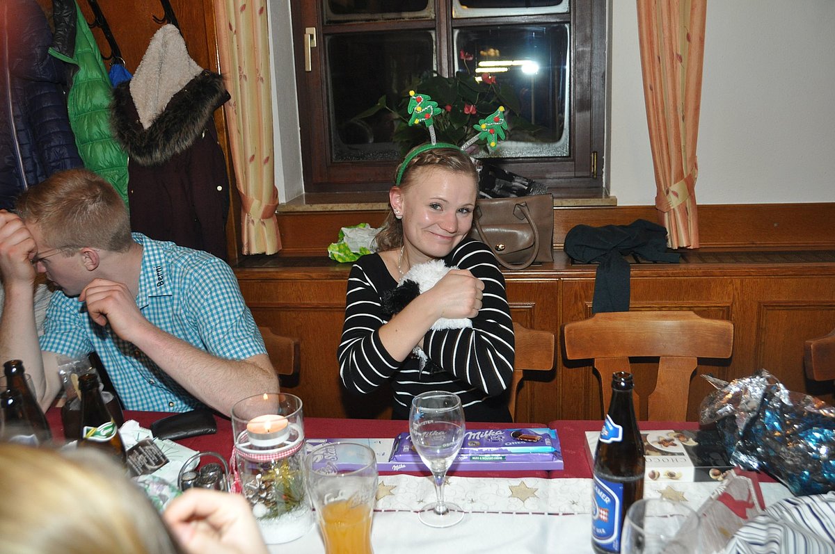 Mit weihnachtlichen Gedichten und Liedern starteten wir in diese Feier. Durch ein lustiges Krippenspiel von Markus Kreuzer und Bernhard Rieser wurde viel gelacht. Anschließend wurde gegessen und jeder freute sich schon auf das anschließende Wichteln. Die Geschenke wurden ausgepackt und ausprobiert und die Feier fand einen gemütlichen Ausklang.